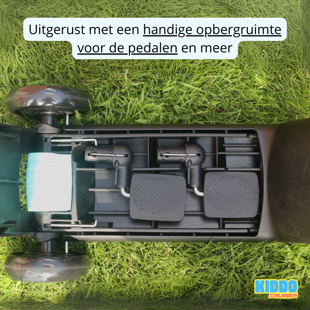 Efficiënte opbergruimte voor de pedalen van de driewieler en meer.