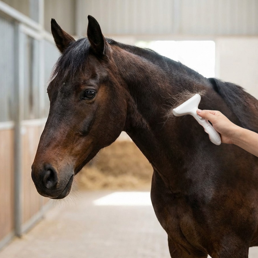 Verwijdert losse paardenharen sneller dan klassieke borstels
