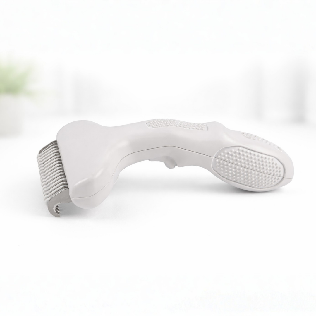 De speciale kamstructuur grijpt losse haren direct uit de vacht, zonder dat ze blijven vastzitten in de borstel. Hierdoor verwijder je in minder bewegingen meer haar, zelfs bij zware rui.