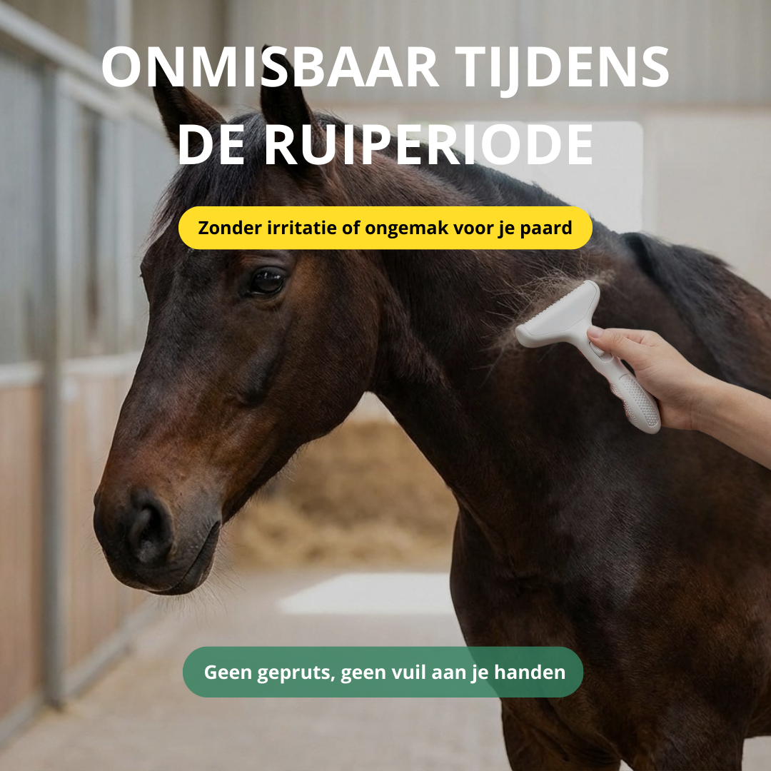 Tijdens de ruiperiode – of bij dagelijks poetsen – laten paarden enorme hoeveelheden losse haren achter op dekens, zadeldekjes en borstels. Gewone borstels raken snel verstopt, kosten tijd en zorgen voor frustratie.