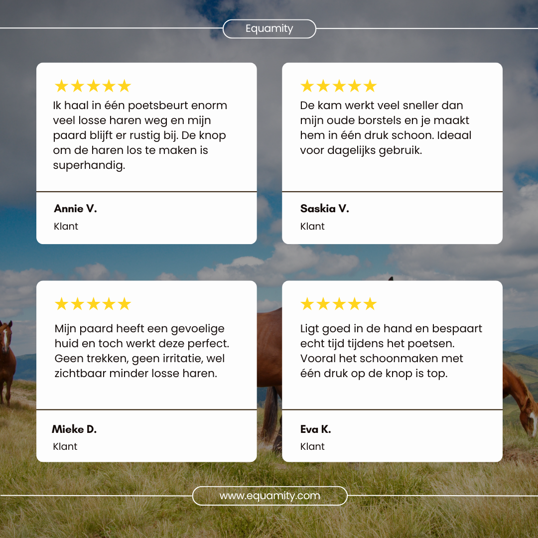 Omdat haren niet blijven hangen en snel loskomen, ben je sneller klaar. Ideaal bij meerdere paarden of wanneer je efficiënt wilt poetsen zonder in te boeten op resultaat.